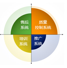 質(zhì)量控制系統(tǒng)、售后服務(wù)系統(tǒng)、應(yīng)用培訓(xùn)系統(tǒng)、獨特的市場推廣系統(tǒng),讓經(jīng)銷商60天內(nèi)快速賺錢